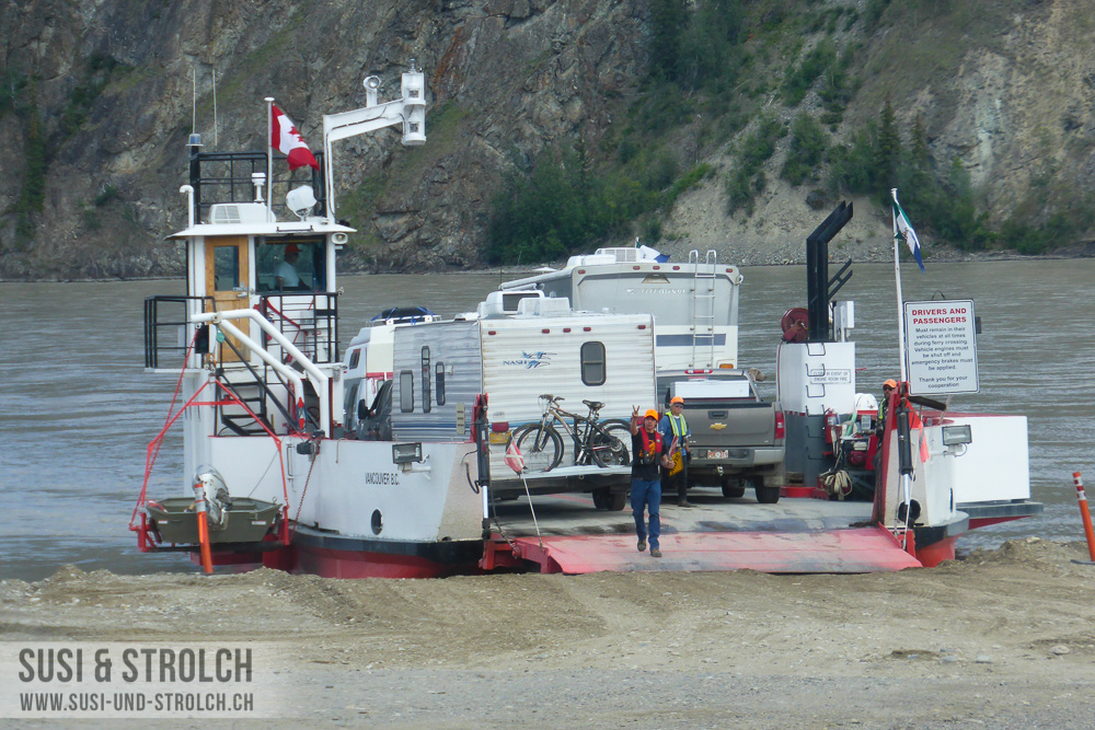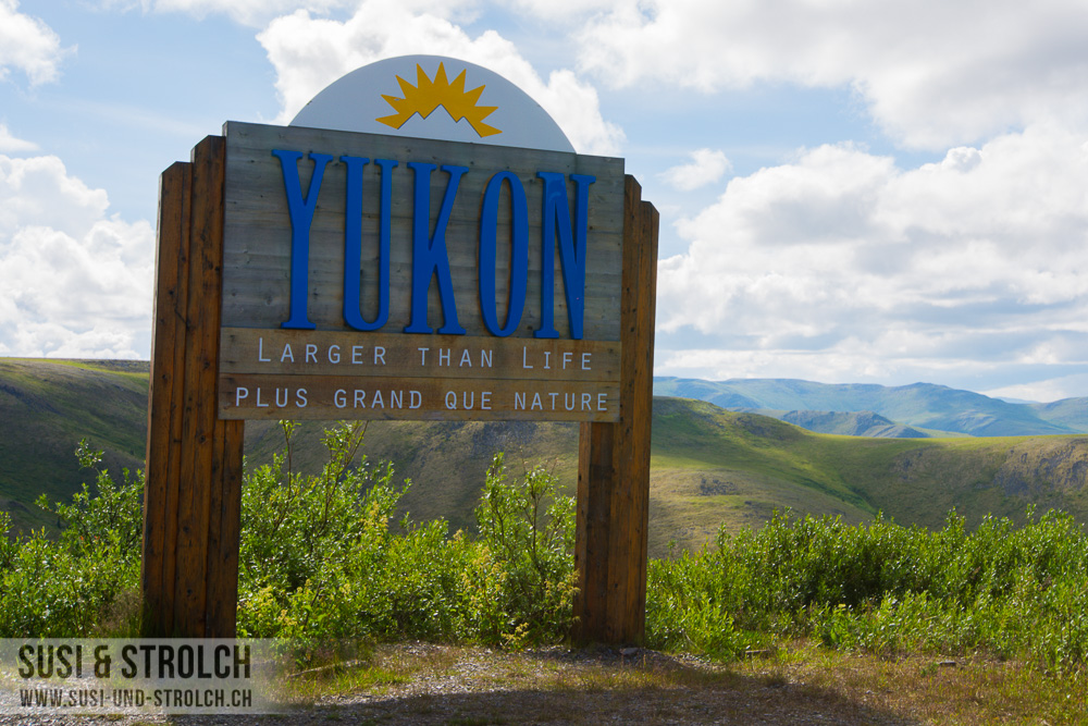 Den Grenzübergang nach Kanada erreichten wir um die Mittagszeit rum, wir mussten unser Feuerholz abgeben, ansonsten lief alles problemlos. Und nun hiess es: Welcome to Canada! Vor einem Jahr hätten wir nicht gedacht, dass wir nun bereits WIEDER in Kanada sein werden 🙂 Auch auf der kanadischen Seite setzte sich die wunderbare Landschaft fort. Wir erreichten problemlos Dawson City, eine zwar deutlich grössere, aber etwa genauso spezielle Stadt wie Chicken. Bei einem Campground durften wir die Duschen nutzen, tankten erneut und nutzten auch noch gleich die Dumping-Station, um das Abwasser abzulassen und neues Frischwasser zu tanken. Da erst etwa 15 Uhr war und wir noch durchaus fahrtüchtig waren, entschieden wir uns nicht wie vorgesehen in Dawson zu übernachten, sondern noch weiter zu fahren.