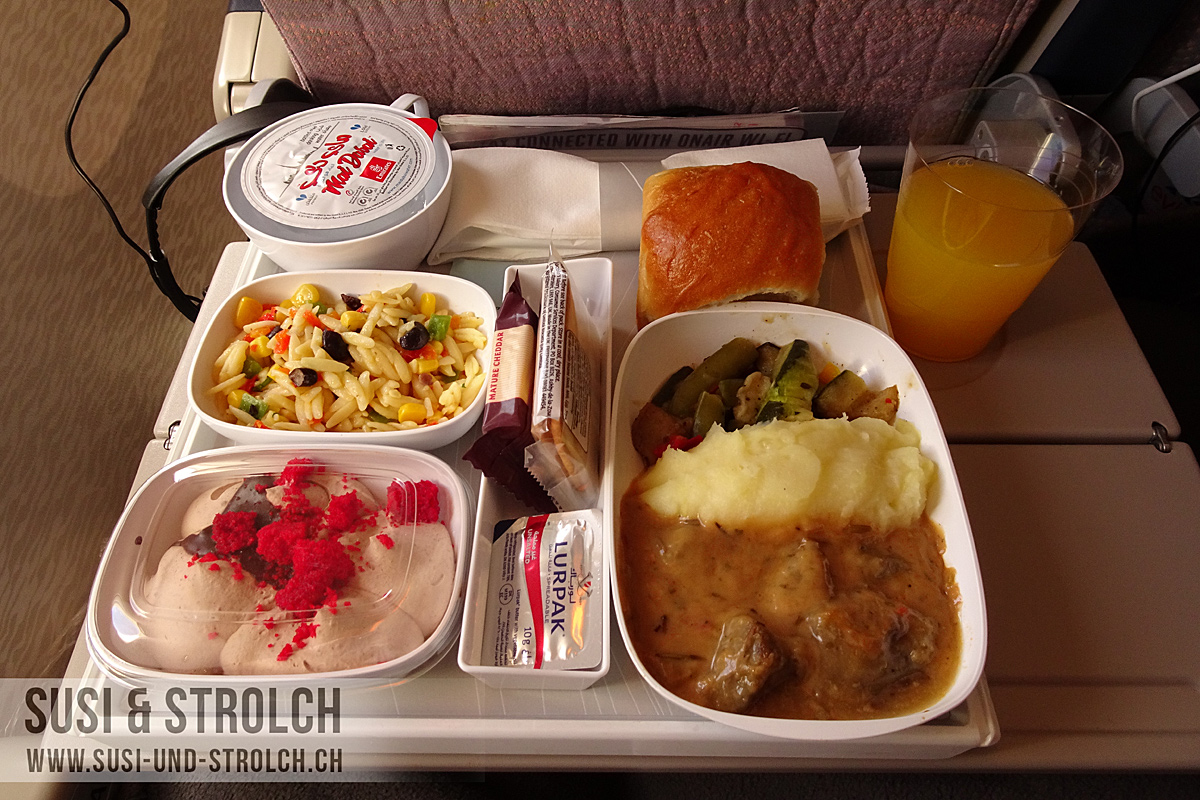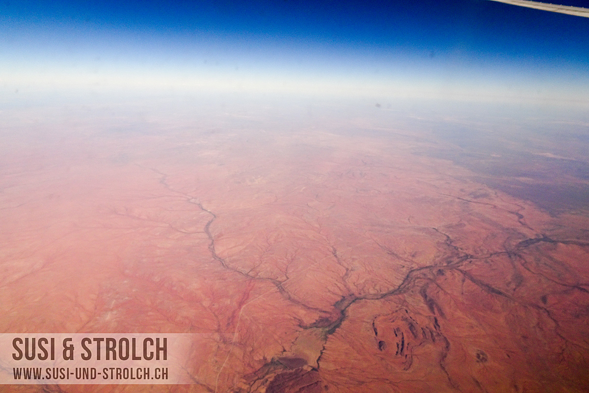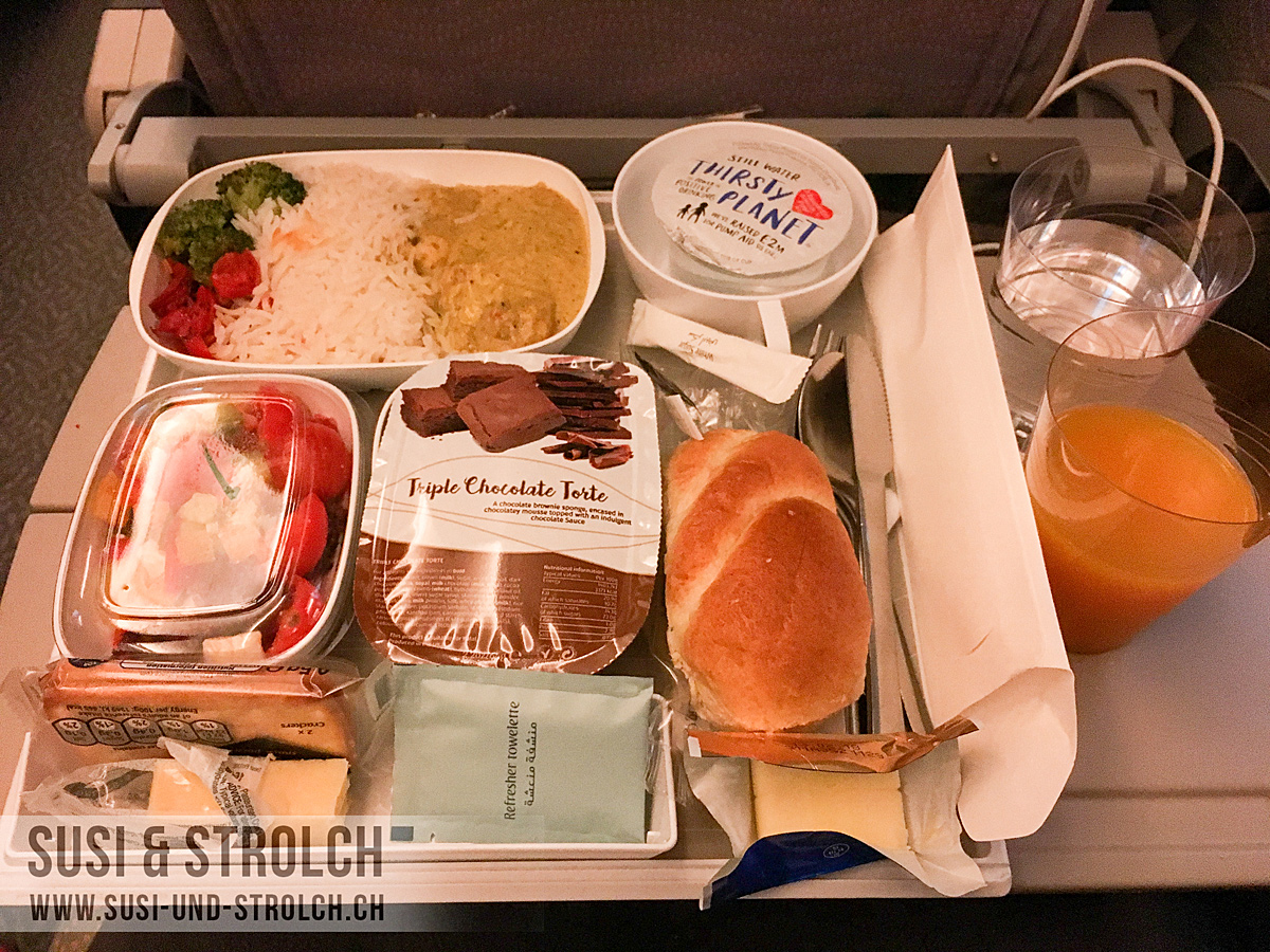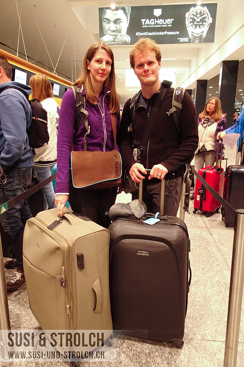 Nachdem unsere letzten Reisen immer in aller Herrgottsfrühe begonnen hatten, begann die aktuelle Reise spät. Nachdem wir beide noch arbeiten mussten, gab es nach Feierabend noch einen stressigen Endspurt beim Packen. Um 17 Uhr kam unser Privat-Chauffeur Johnny, lud uns und unser Gepäck in seine Limousine und brachte uns sicher und zügig an den Flughafen in Zürich. Unterwegs hatte es erstaunlich wenig Stau und am Flughafen erstaunlich wenig Wartezeit, sodass wir sogar viel zu früh dort waren. Das ermöglichte uns noch ein gemeinsames Abendessen im „Upperdeck“ 🙂 Danach ruckzuck durch die Sicherheitskontrolle und ab ins Flugzeug. Eine A380 der Emirates Airlines brachte uns nach Dubai – ein langjähriger Traum geht damit für mich in Erfüllung! Das grösste Passagierflugzeug der Welt hat mich schon lange fasziniert und heute durfte ich endlich damit fliegen. Ein echt cooles, riesiges Ding! Von den Emirates waren wir restlos begeistert, soooooo viel Platz in der „billigen Holzklasse“, wirklich unglaublich. Service, Essen, Ausstattung, Entertainment System… Alles top! So konnten wir beide den Nachtflug grösstenteils verpennen…