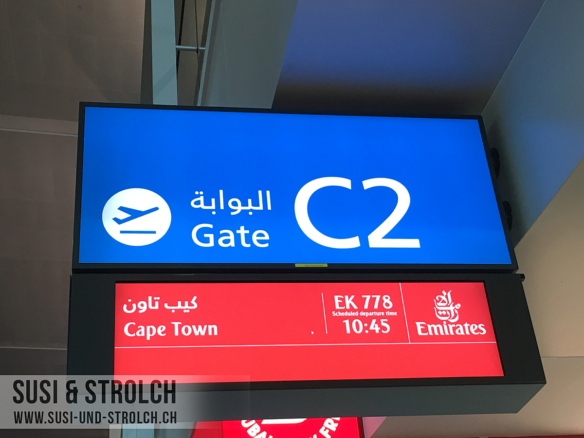 In Dubai mussten wir umsteigen und hatten dazu rund 3 Stunden Aufenthalt. Die erneute Sicherheitskontrolle verlief sehr schnell und problemlos, sodass wir auch hier wieder zu viel Zeit hatten und in der Wartehalle erneut etwas Schlaf gewinnen konnten.