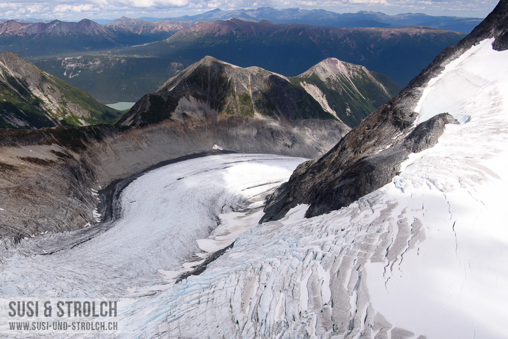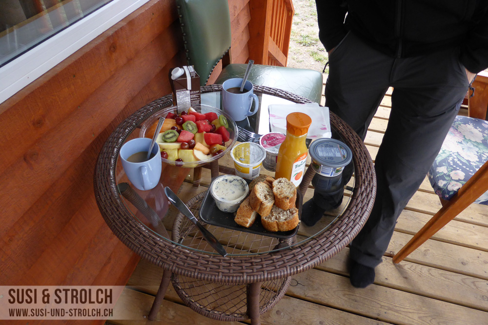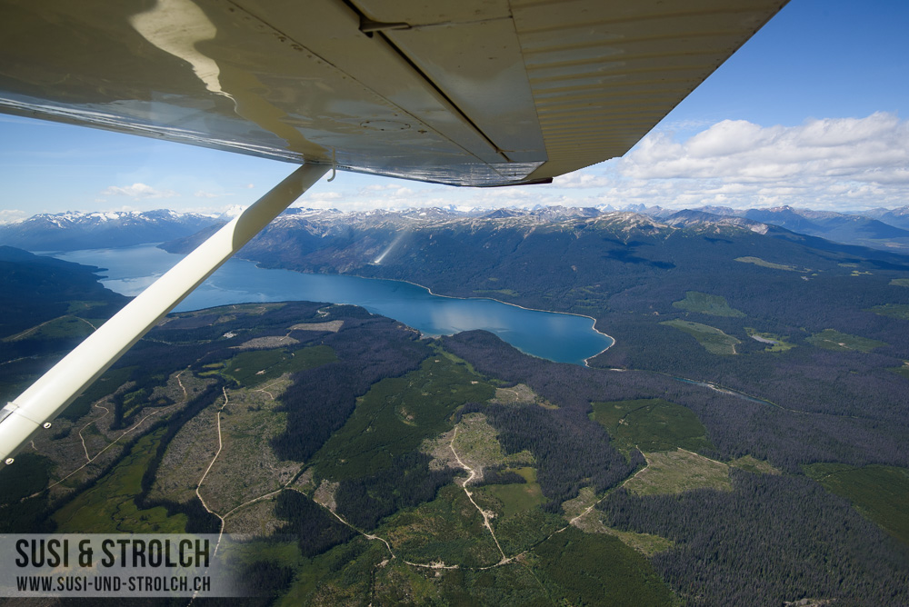 Nach einem herrlichen, selber zusammengestellten Frühstück auf dem Balkon unserer Cabin konnte der heutige Tag in Angriff genommen werden. Der Plan sah heute einen Fahrtag von Smithers nach Prince George (knapp 400 km) vor. Nun kommt es halt manchmal – das kennen wir ja 🙂 – anders, als man denkt. Suu hatte mich gestern überrascht, indem sie für mich einen Rundflug mit einem Wasserflugzeug organisiert hatte 😀 Das heisst, organisiert hatte sie das ganze bereits Monate im Voraus, vorgesehen war er auf den gestrigen Tag. Unter einem Vorwand plante sie es so, dass wir um ca. 15 Uhr in Smithers ankamen. Eigentlich wollte sie es bis zur letzten Minute geheim halten, durch das Wetter musste sie jedoch umdisponieren und mir die Überraschung verraten. Wir haben telefonisch mit dem Anbieter Kontakt aufgenommen und den Flug schliesslich von gestern auf heute verschoben. Die Entscheidung stellte sich als absolut richtig heraus! Aber der Reihe nach … 🙂