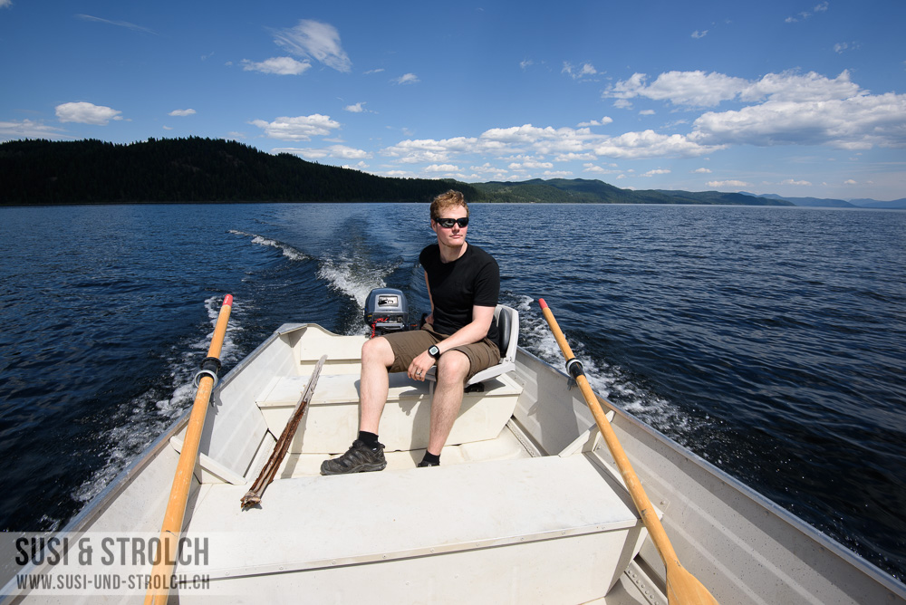 Am Montagvormittag brachte uns Dani mit dem Pickup zum Canim Lake, den wir für rund 3 Stunden mit einem Motorboot erkundeten. An einem kleinen Strand legten wir für die Mittagspause an. Den Nachmittag verbrachten wir einfach mal mit Nichts-Tun, was wir beide ja kaum noch kennen… Nach dem selber zubereiteten Abendessen spielten wir noch zwei lustige Spiele, vor allem „Das dynamische Wortspiel,wo alle mitmachen können“ war zu witzig 😀