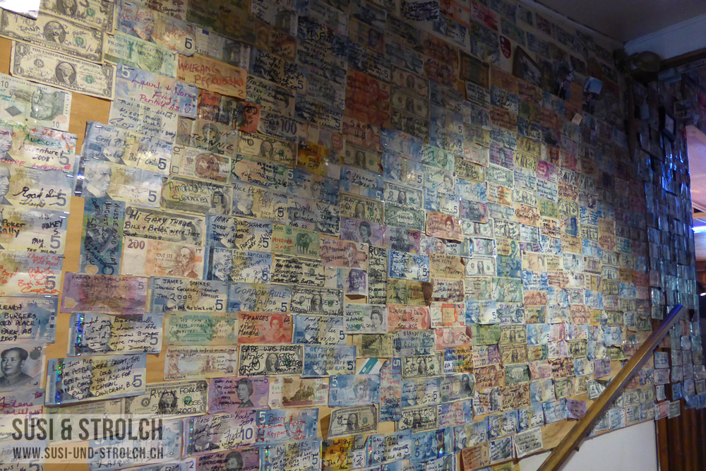 Am Mittwoch hatten wir die längste Strecke zu bewältigen. Der Abschied von Kayanara fiel uns wirklich enorm schwer – es ist so ein wunderschönes Plätzchen auf dieser Erde! Wir haben uns wahnsinnig wohl gefühlt und genau das gefunden, was wir gesucht haben: Wildnis und Ruhe, einfach Entspannung per fernab von der Zivilisation. Nach einem letzten Frühstück fuhren wir also los. Das Wetter war sehr durchzogen, mal regnete es, mal schien die Sonne… So machten wir nur einen Stop in einem Pub, das schon 80km entfernt mit Plakaten für den „World famous burger“ Werbung machte. Das Pub war dann wirklich witzig und vor allem äusserst originell! Die Frau die uns bediente war ein Unikum 😉 Ob der Burger wirklich weltbekannt ist, darüber kann man streiten – aber lecker war er allemal. In Valemount wollten wir in einem grösseren Laden einkaufen, ups… Valemount stellte sich als winziges Kaff heraus, das ausser einem kleinen, unsympathischen IGA echt nichts zu bieten hatte! So holten wir nur das nötigste und fuhren weiter. Durch den Mount Robson Park ging es stetig in die Höhe und uns boten sich ständig wechselnde Aussichten auf Fluss, Wald und Berge – sooo schön! Irgendwann nach 20 Uhr erreichten wir unser Ziel dann endlich: Der Jasper National Park, genau gesagt die Pine Bungalows, wo wir für 2 Nächte eine kleine Hütte gemietet hatten. Dominique bereitete uns einen mega leckeren Caesar Salad zu, bevor wir einmal mehr müde ins Bett fielen.