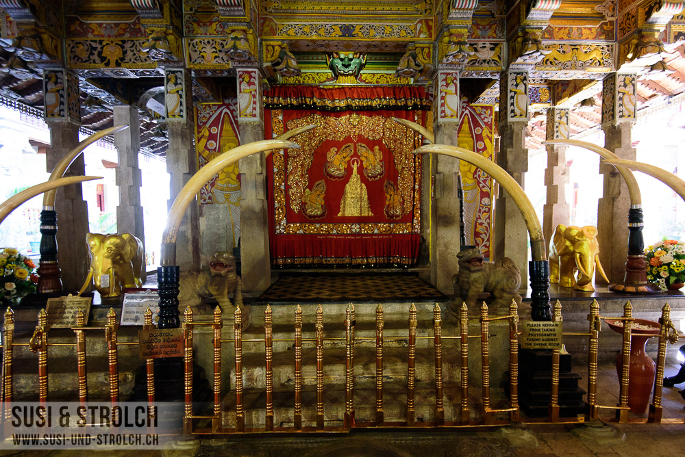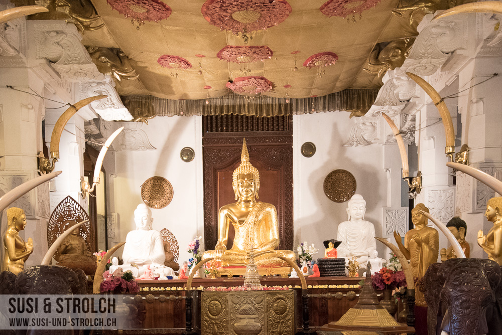 Den Zahntempel besichtigten wir heute etwas genauer, auch noch von innen. Wie es sich für buddhistische Tempel gehört, dürfen diese nicht mit Schuhen betreten werden. Immer wieder komisch, wenn man mit Socken durch einen Tempel spaziert 😉 Der Tempel war nicht soooo spannend, aber wenn man schon mal in Kandy ist…