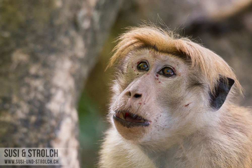 Wir heuerten danach einen Taxi-Fahrer für den Rest des Tages an, der uns zu allen gewünschten Zielen bringen wird. Erstes Ziel war das Udawatta Kele Sanctuary, ein relativ grosses Stück Urwald – mitten in Kandy! In diesem Stück Natur konnte eine reichhaltige Flora und Fauna erhalten werden. Wir machten den ca. einstündigen Rundweg, der selbst für mich sehr angenehm zu bewältigen war. Leider konnten wir keine Wildtiere beobachten, aber es war eine willkommene Entspannung inmitten wunderschöner Natur und unglaublicher Stille! Beim Weg zurück in die Stadt sahen wir dann doch noch herzige Äffchen und unser Fahrer hielt an, damit wir einige Fotos machen konnten 🙂