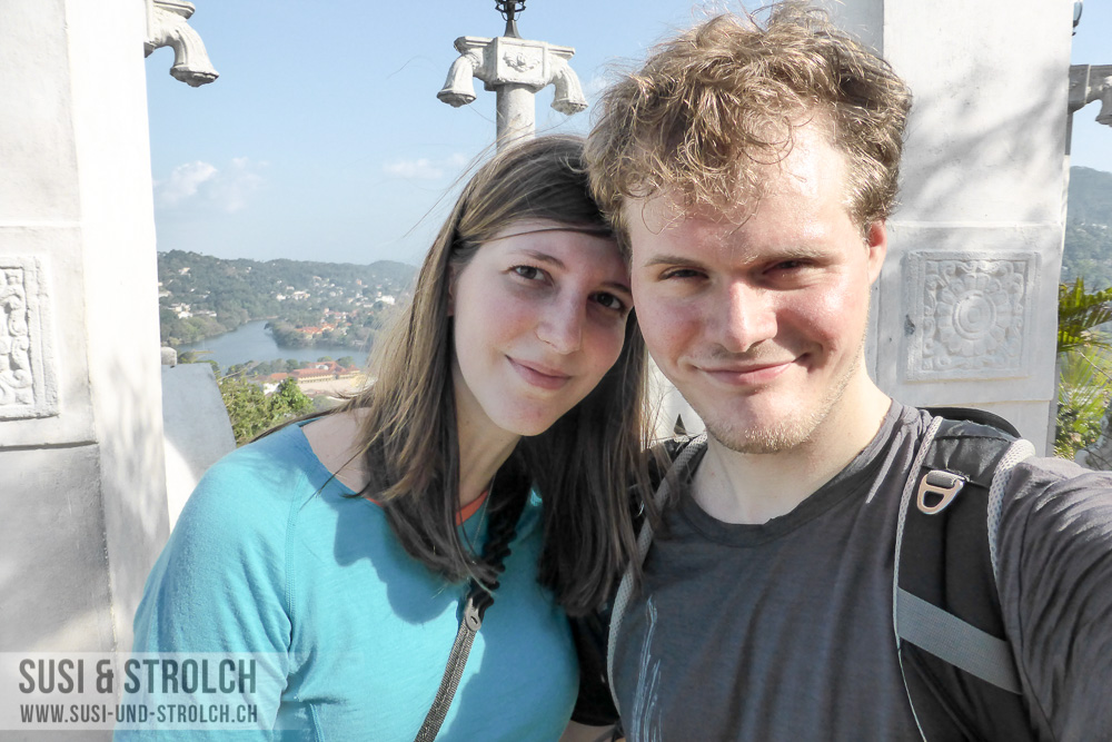 Mit 1.5 Stunden Verspätung, um 11 Uhr fuhr der Zug in den Bahnhof Kandy ein und endlich hatte unsere lange Anreise ihren Bestimmungsort erreicht. Mit einem (völlig überteuerten) TukTuk fuhren wir zu unserem Hotel: „Heaven Seaven“, das sich als sehr nett herausstellte. Hübsches Zimmer, tolle Aussicht direkt auf den See. Wir hauten uns sofort ins Bett und schliefen zuerst eine (grosse) Runde – was waren wir vielleicht müde!