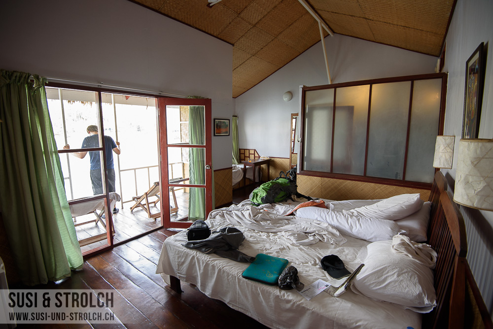 Beim Begleichen der Hotelrechnung spielte sich mal wieder eine bezeichnende Situation ab. Der Mann an der „Freiluftrezeption“ fragte mich „Cash or Credit Card“? Bevor ich antworten konnte, sagte ein bereits etwas älterer Mann neben mir – es war auch ein Tourist, der seine Rechnung am Begleichen war – „Choose cash – they take a huge surcharche for credit card!“. Ich realisierte, dass der Franzose gerade mit dem freundlichen laotischen Herren an der Rezeption über die Kreditkartengebühren von 5% am Streiten war. Wenn er dies gewusst hätte, hätte er vorher noch Bargeld abgehoben, so das Argument des Franzosen; auf der Insel selbst gibt es nämlich keine Geldautomaten. Ob er dafür wohl keine Gebühr bezahlt?, fragten wir uns. Jedenfalls hatte der Franzose sein Ipad in der Hand und versuchte, soweit ich das aus ein paar Metern Entfernung nachvollziehen konnte, auf die Hotel-Website zu surfen und dem Laoten klarzumachen, dass nirgends etwas von Kreditkartengebühren gestanden hat. Zwar indirekt, aber mit Gestik, Mimik und Wortwahl hat der Franzose den Angestellten quasi als Dieb bezeichnet und sich so verhalten, als ob sie diesen abzocken würden. Im selben Moment präsentierte mir der andere Herr an der Rezeption die Hotelrechnung. Uns wurden nur 2 anstelle der 3 Nächte verrechnet, obwohl alles andere eigentlich gerechtfertigt gewesen wäre. Wir hatten das Hotel schliesslich erst am Abend gegen 20 Uhr per E-Mail darüber informiert, dass wir krankheitshalber erst einen Tag später anreisen. Ich hatte nicht einmal danach gefragt, dies taten sie von sich aus! Ich habe dan noch nachgeschaut – auf der Hotelwebsite steht zwar tatsächlich nichts von Kreditkartengebühren. Auf meiner Buchungsbestätigung von booking.com jedenfalls steht schwarz auf weiss „Please note that a 3 to 5% surcharge applies for payments made with credit cards.“ Wie auch immer – ist es wirklich etwas dermassen nicht alltägliches, dass bei der Bezahlung mit Kreditkarte Gebühren erhoben werden?