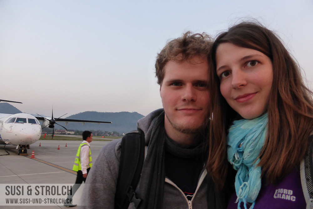 Gut 2.5 Stunden dauerte die Fahrt, bis wir in Pakse ankamen, und von dort ging es dann zum Flughafen, wo wir unseren Flug mit Lao Air nach Luang Prabang nahmen. Dort angekommen, nahmen wir ein Taxi, welches uns zu unserem Guesthouse mit dem Namen Manichan brachte. Unseren Hunger stillten wir an diesem Abend mit Streetfood, also mit Essen, das an Strassenständen zubereitet wird. Danach schlenderten wir noch ein bisschen durch den Nachtmarkt und fielen dann müde in unsere Betten.