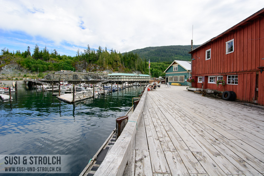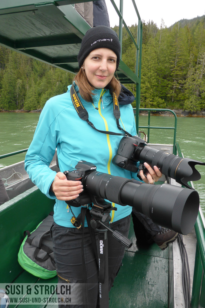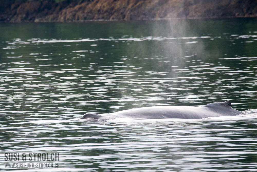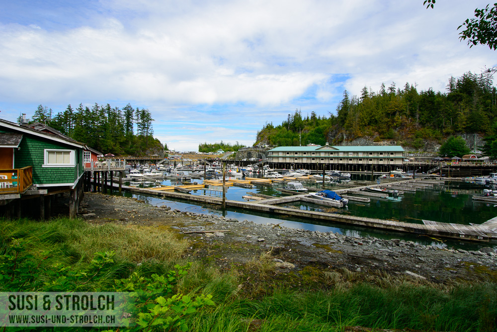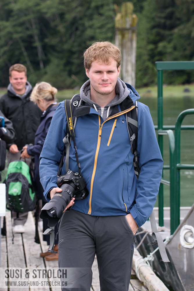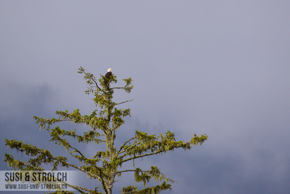 Der Montag war ein besonderer Tag, hatten wir doch extra für diesen Tag noch einmal unsere ursprüngliche Route über den Haufen geworfen. Um 06:45 Uhr mussten wir bereits in Telegraph Cove sein, von dort aus startete nämlich unsere Tagestour mit „Tide Rip“. Mit 10 anderen Leuten und unseren zwei Guides stiegen wir in ein Boot namens „Kermode“ um und los ging es durch den Knight Inlet, Nordamerika’s längstem Meeresarm! Das Broughton Archipelego ist ein riesiges Gebiet mit unbewohnten Inseln, Felsen und Riffs und der grösste Marine Park von British Columbia. Die Fahrt war echt unglaublich schön!