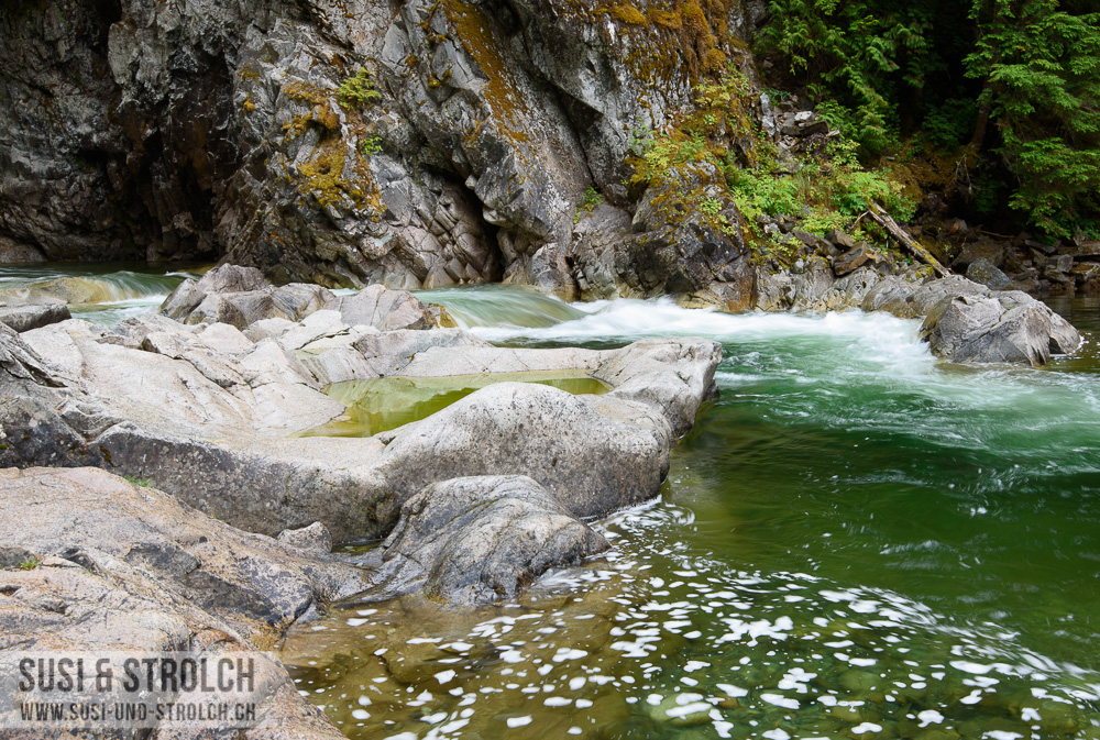 So fuhren wir weiter bis Terrace um Miss Roger mit etwas Benzin zu füttern und das „Heritage Museum“ zu besuchen. Dort sind alte Gebäude von ca. 1920 nachgebaut und mit viel Liebe zum Detail präsentiert. Es war eine spannende Abwechslung. Beim „Kleanza Creek Provincial Park“ picknickten wir, leider war der Graufilter irgendwo im Koffer – der Fluss hätte geniale Fotos gegeben damit!